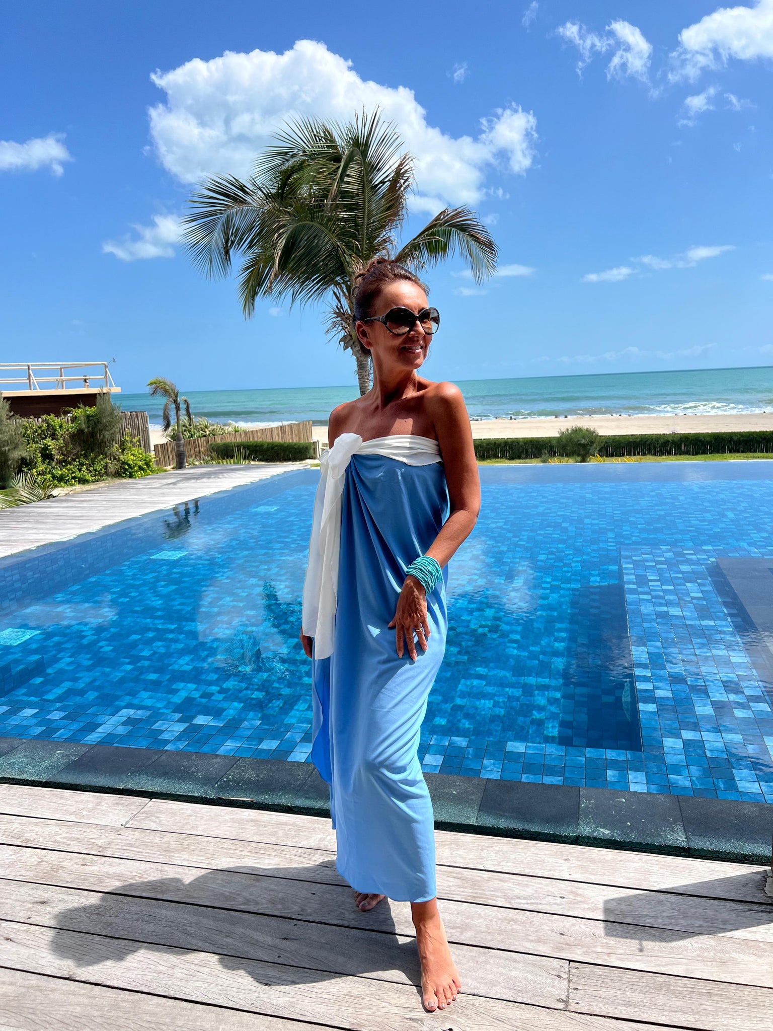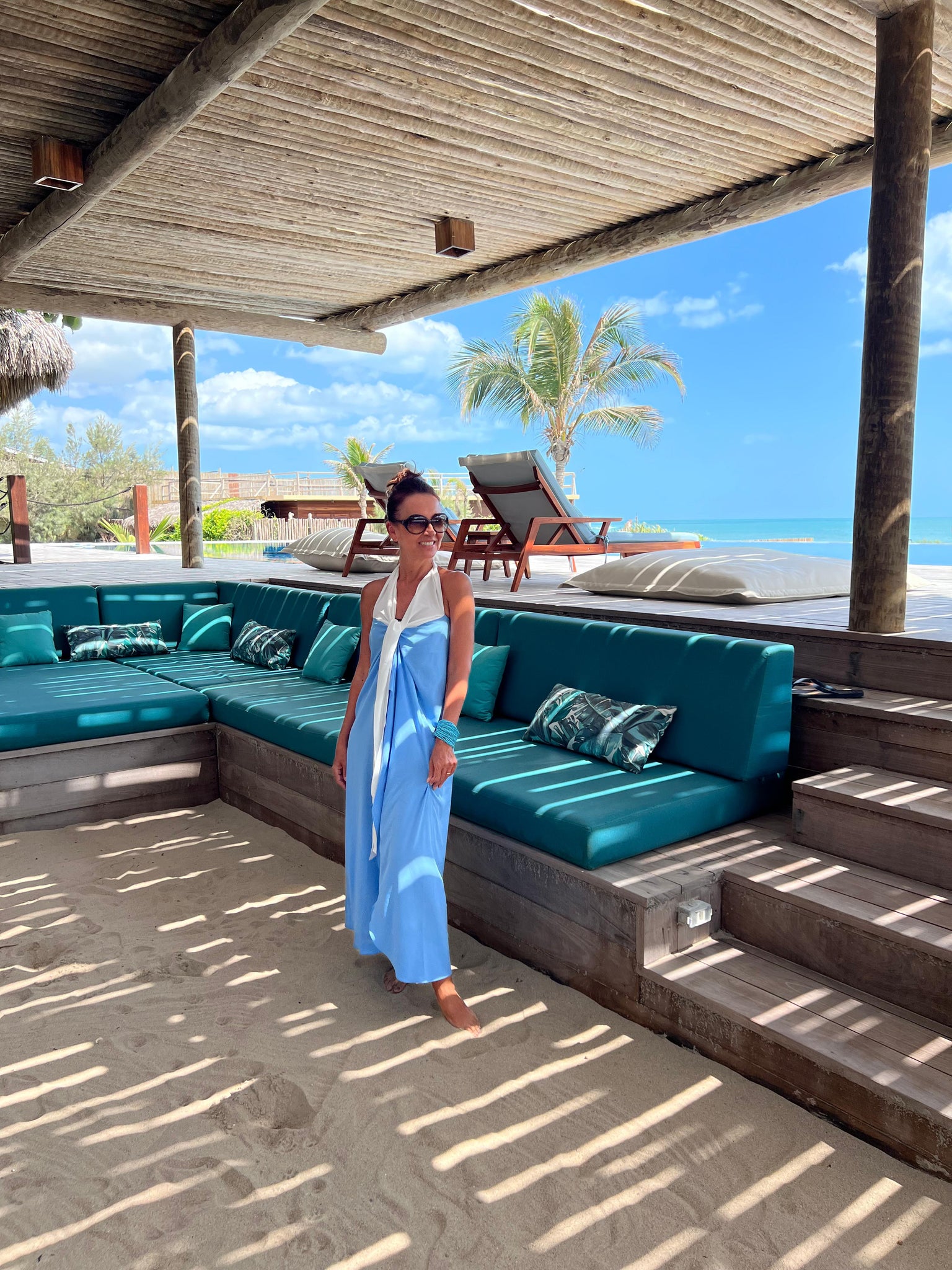 Panneaux em duas cores suaves para amarrar no corpo e deixar seu dia de praia ainda mais elegante, prático e confortável.