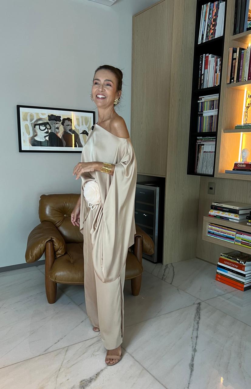 Conjunto Blusa Ampla+ Calça Juliana Champanhe Acetinado
