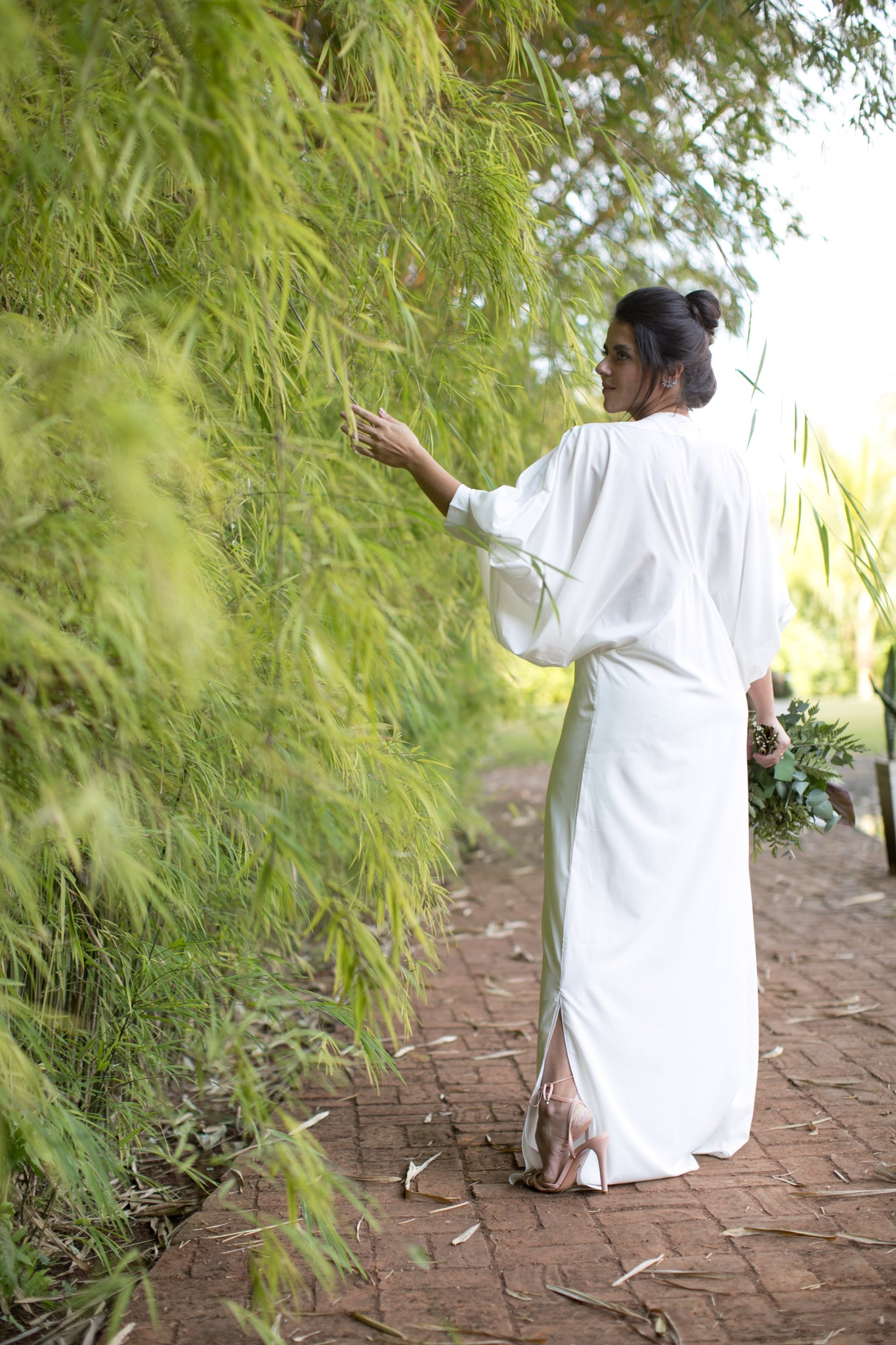 Kaftan em mangas bufantes com punho, corte que desenha levemente a cintura, comprimento longo, fendas laterais, decote V e movimento leve e fluido!
