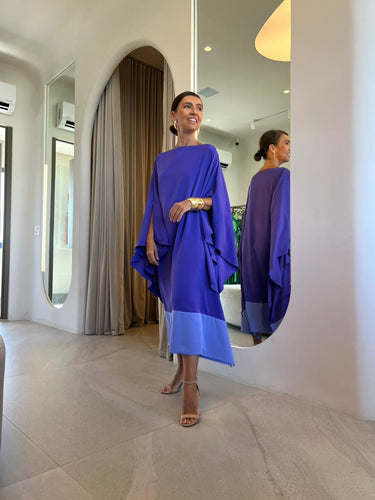 Kaftan Simplice Dois Tons Midi Azul e Cinza